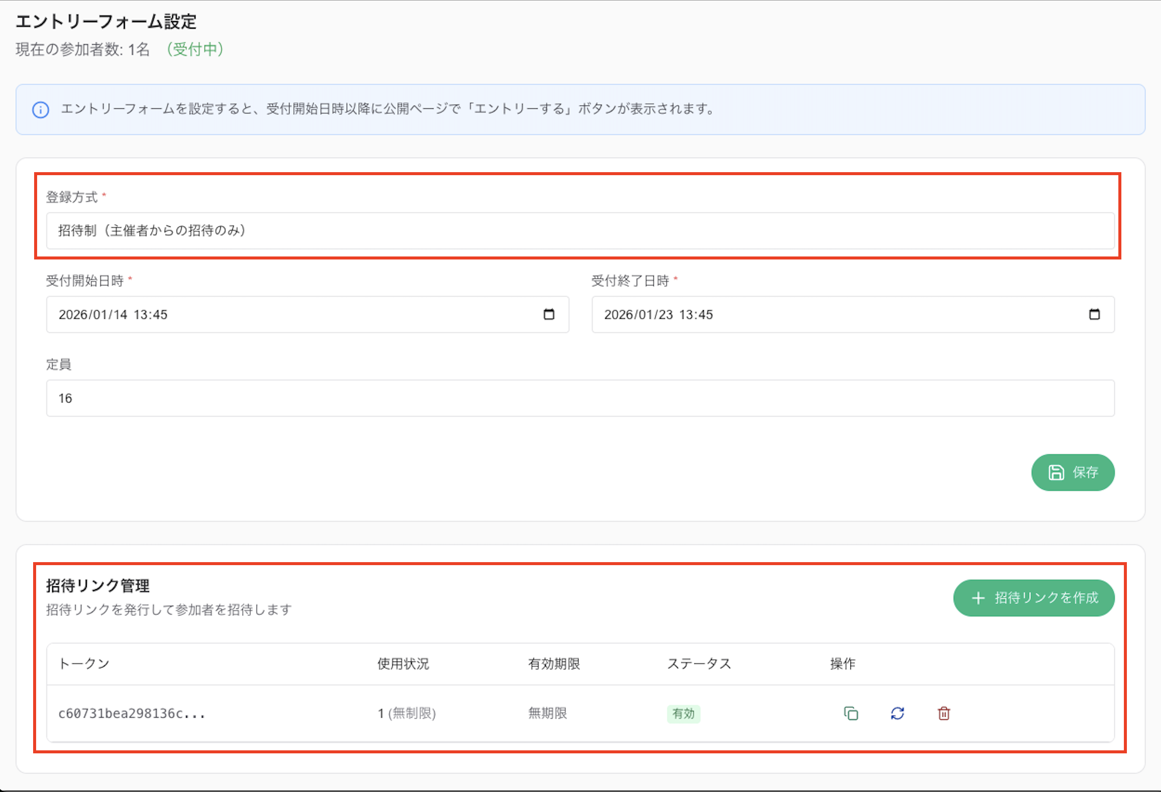 招待リンク管理