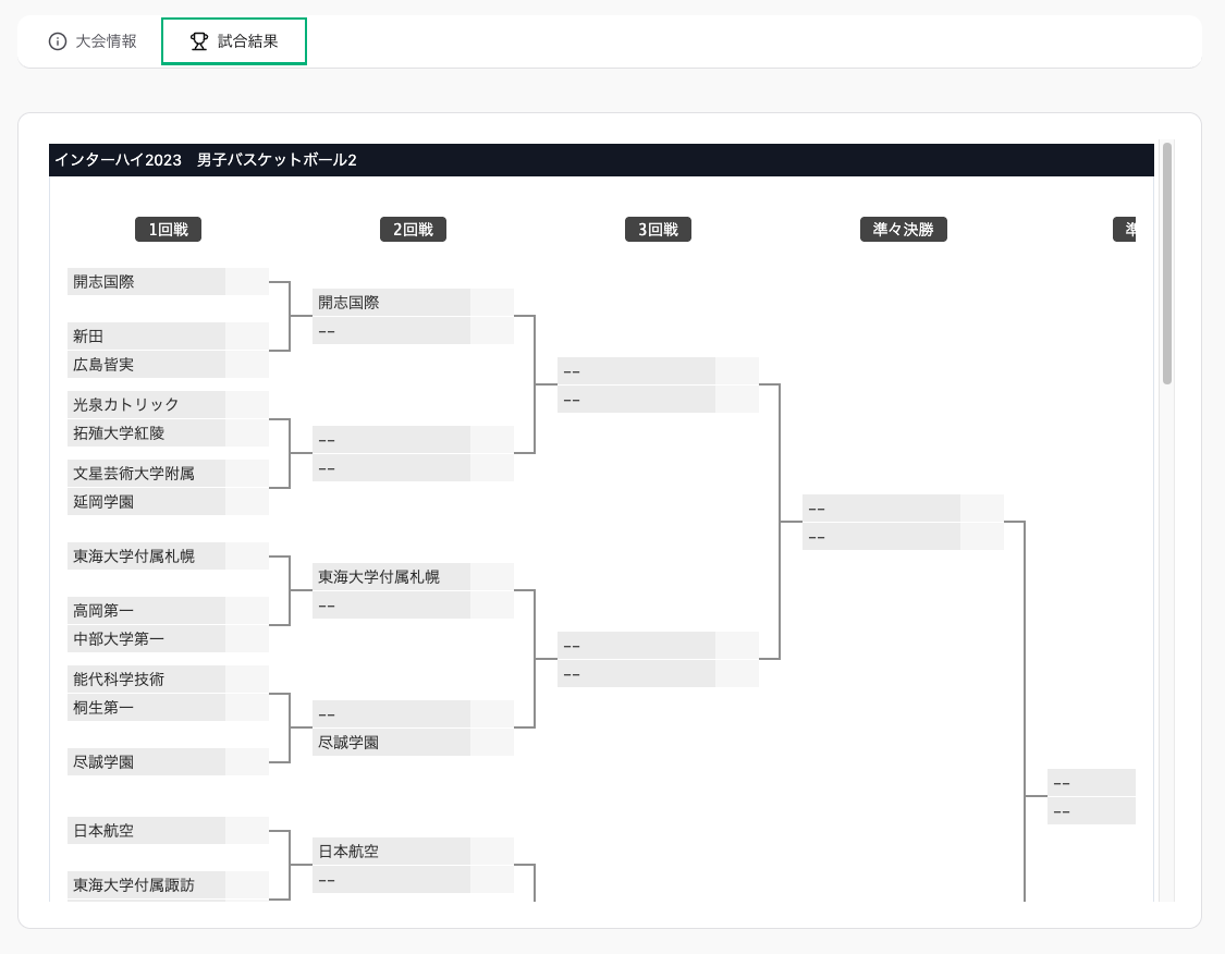 試合結果は主催者がTHE TOURNAMENTで更新すると自動的に反映されます